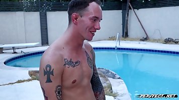 Amateur brunette is sucking dick and getting fucked next to the swimming pool, in the afternoon