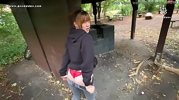 Amateur teen bent over to take hard cock, before he finished himself on her mouth, in the park