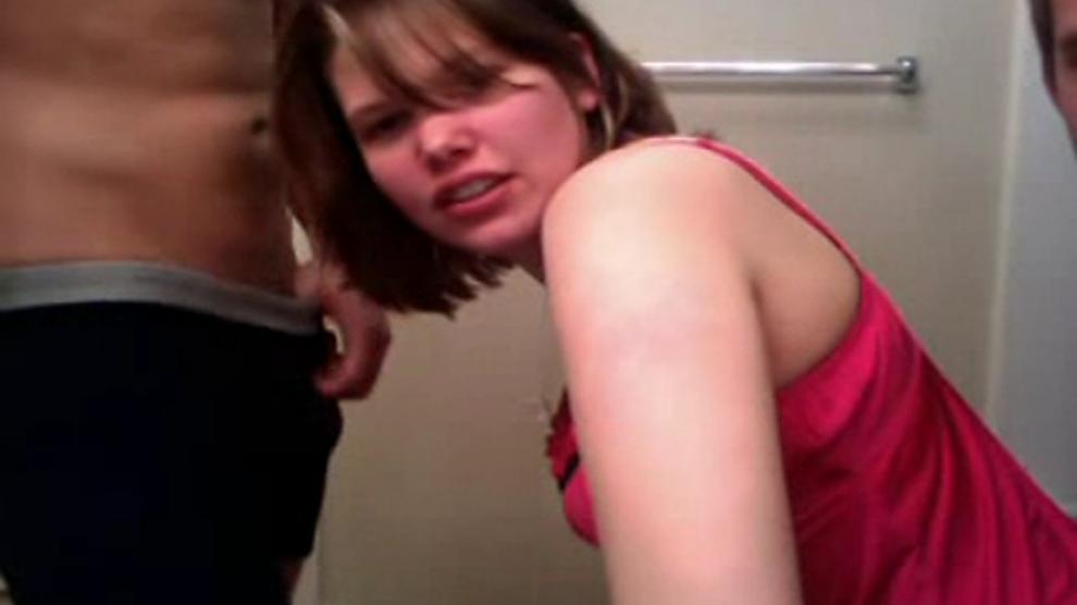 Young webcam slut tastes two cocks in front of webcam