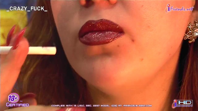 Description: Shiny Painted Lips Sucking a Cigarette