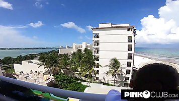 Amateur brunette is moaning from pleasure while getting fucked in a hotel room, during the day