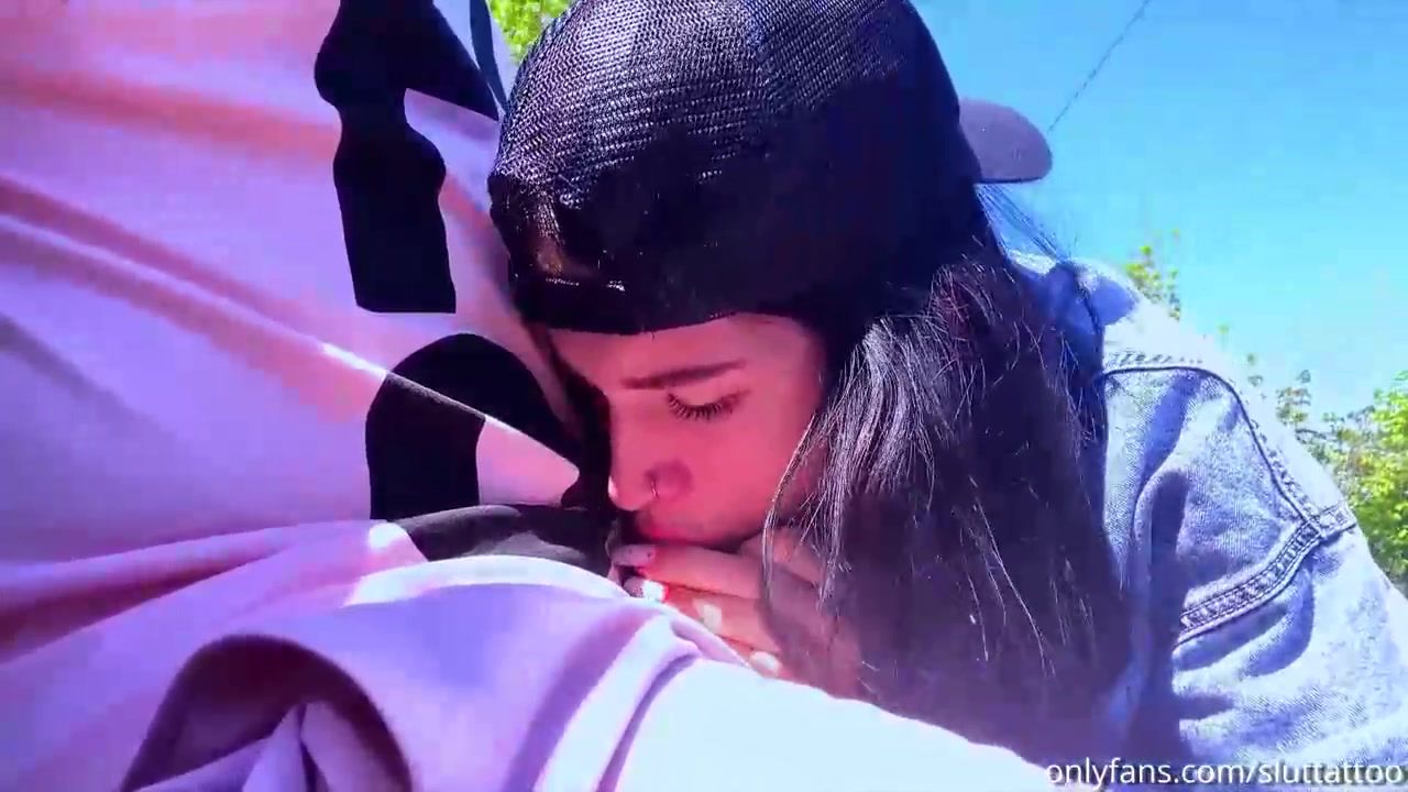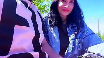 Amateur brunette is often giving blowjobs to random strangers in public places, during the day